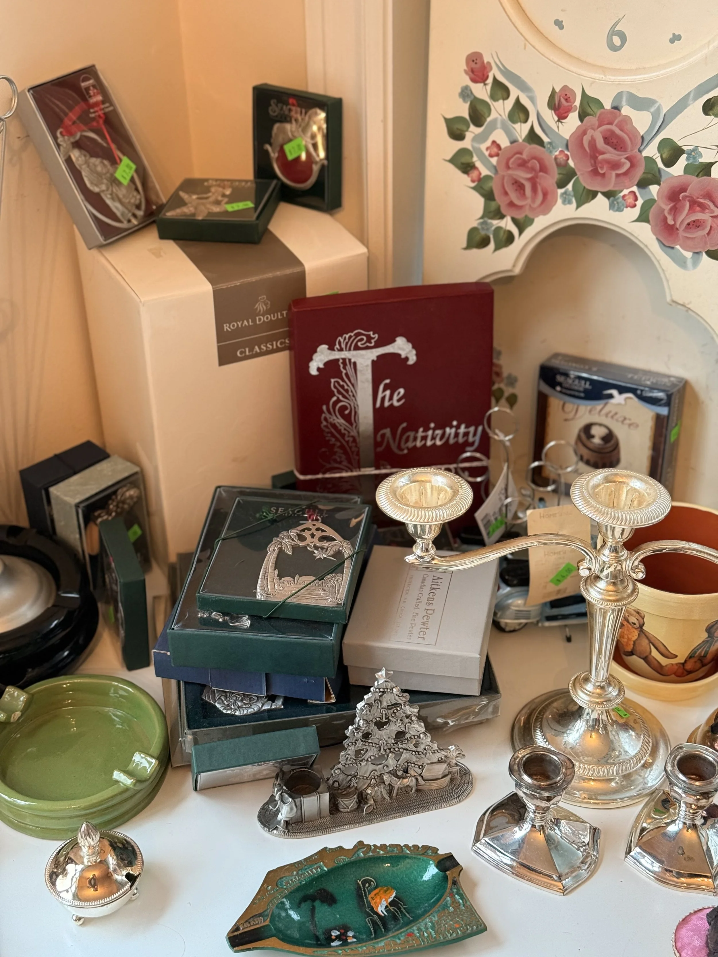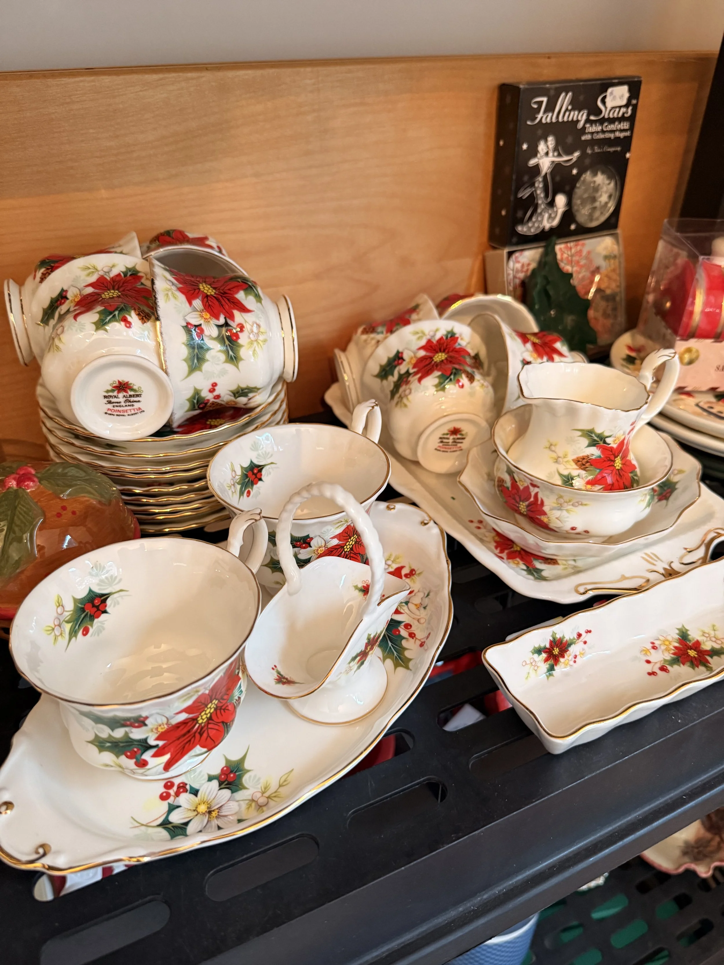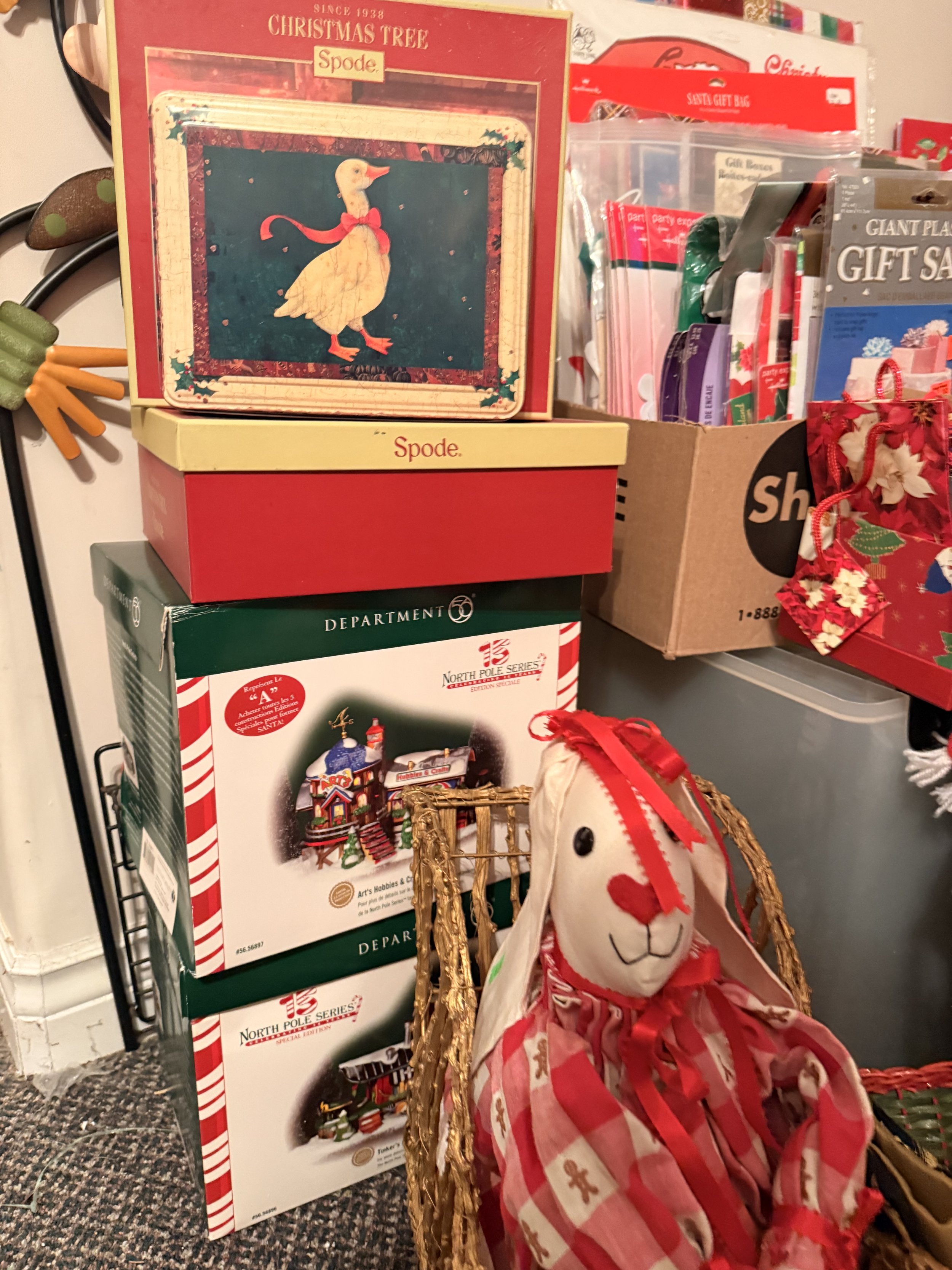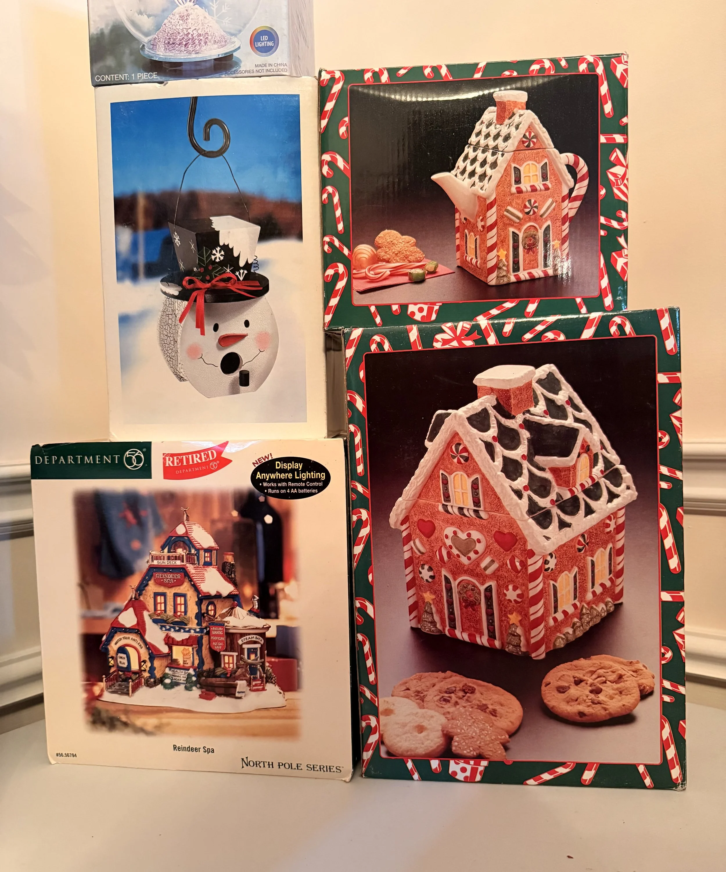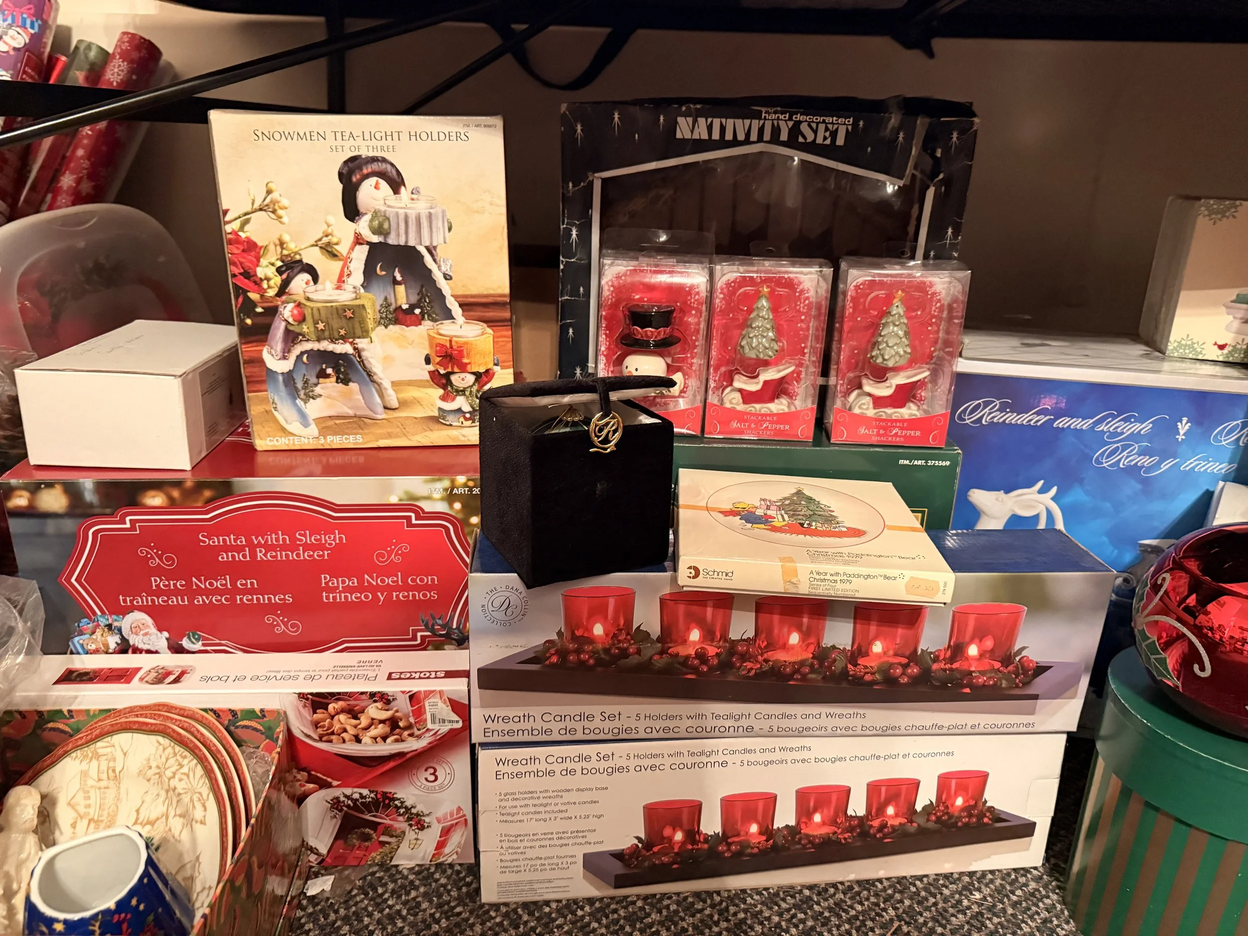 Some of the items at this sale include Christmas décor, including Spode, Royal Albert, mini Noma blow molds, blown glass ornaments, Hallmark, Zellers tinsel tree, wrapping paper, bags, cards, etc. Halloween décor, including beanie babies, linens, kitchenwares, vintage masks, etc. Easter, Valentines, and St Patrick's day Décor, Kitchenwares including numerous new-in-box items, cookbooks, napkins, Cornflower crystal, Royal Albert Old Country Roses Dishes and other unique pieces, Birks giftware, Candles, Murano, Teacups, Meindl figurines, large assortment of Seagull pewter items such as frames, ornaments, décor. Two rooms FULL of name brand clothing and purses, most of which are new with tags such as Susan Bristol, Levis, Tommy Hillfiger, Liz Sport, Linda Lundstrom, Mexx, Ikeda Coveralls, Vintage Wedding Trousseau, A closet full with new and vintage childrens clothing, dozens of shoes sandals and boots, gloves, scarves, hats, ties, frames+photo albums, stationary, greeting cards, jewelry + watches, cleaning supplies, toiletries, cologne, soap, hair care items, quilts, table clothes, napkins and two mohair blankets, LPs, cassettes, CDs, vintage Beatles poster, a large assortment of new and vintage toys including Holly Hobbie, Six Million Dollar Man, Barbie, Disney, Sandy Lion Sticker Variety packs, sticker books, Crayola, Raggedy Ann, Snoopy, Dr Seuss, shelves full of new and vintage childrens books, The Waltons, Nancy Drew, Thomas The Tank Engine, etc, Lawncare and outdoor items and décor, Small occasional tables and lamps, vases, books and games, and MORE!